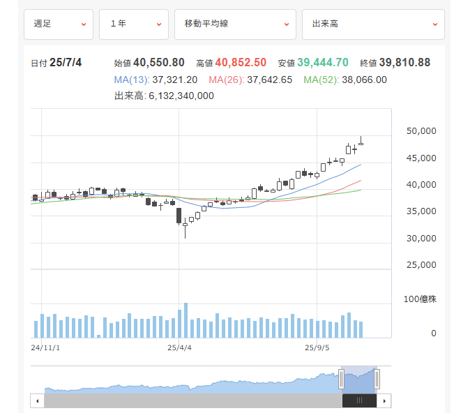 10月20日、日経平均はザラバと終値の両方で初めて4万9000円に乗せました。「9~10月に日経平均が4万5000円~4万9000円」という筆者の予想は十二分に達成されました。