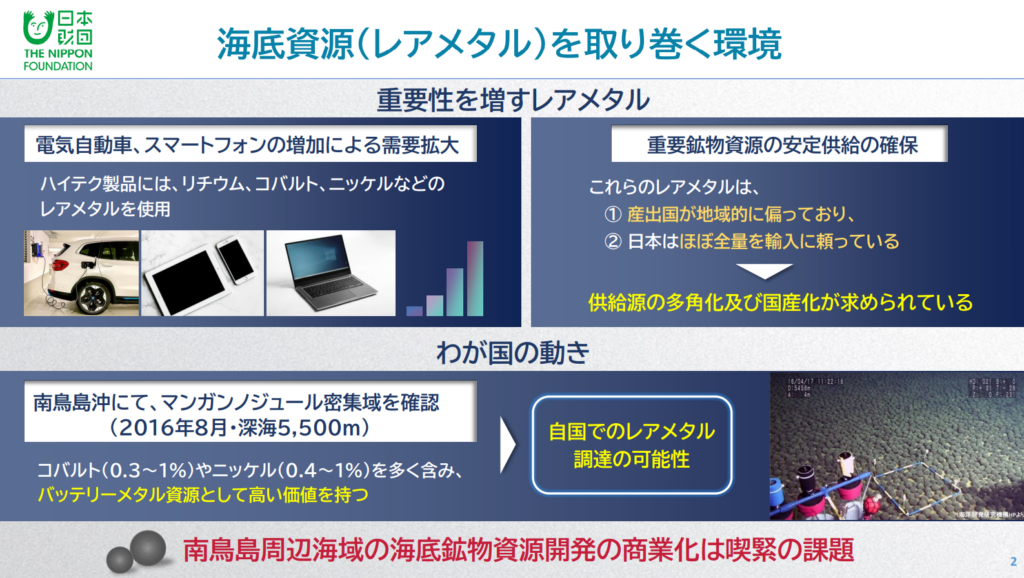 日本の方は私が大注目している「南鳥島のレアアース開発」である。