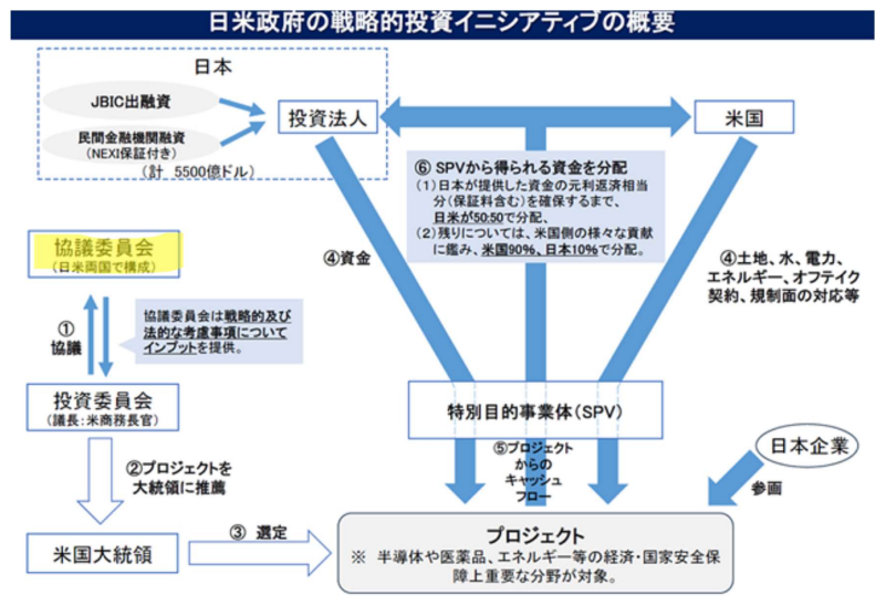 チャートに示した通り「対米投資80兆円」の進行が進んでいる。このチャート通り「対米投資80兆円」とある。